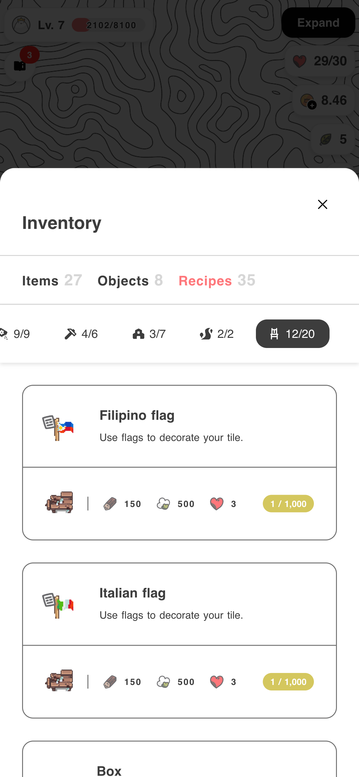 <figure><img src="https://456933507-files.gitbook.io/~/files/v0/b/gitbook-x-prod.appspot.com/o/spaces%2FZ0NpD3iIjqu5rCgYeGIy%2Fuploads%2FsMRQUmBlEPqb0gjU2cFt%2Fkingdom.so_PlanetTilba_6166fa3c79b036d14433fd8f(iPhone%2012%20Pro)%20(1).png?alt=media&#x26;token=cc0d6fcc-87c1-4079-83cd-464f970e9bb5" alt="" width="375"><figcaption><p>Recipes inventory</p></figcaption></figure>
